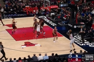 差点摔倒!卡斯尔快攻大风车暴扣表演 奥科吉上来碰了一下犯规