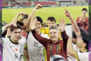 名帅!U23国足队员赛后庆祝纷纷指向主帅安东尼奥,示意向他欢呼