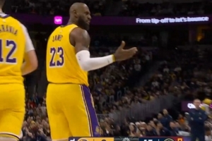 左手有附加动作!詹姆斯持球强攻 被吹进攻犯规