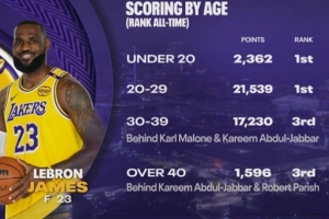 40岁以后:1596分,第三多(仅次于贾巴尔和帕里什)
