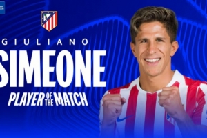 头槌破门,官方:小西蒙尼当选马竞1-1加拉塔萨雷最佳球员