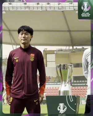 大战在即!安东尼奥、胡荷韬在球场与U23亚洲杯冠军奖杯合影