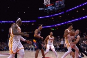 这是真疼!杰伦·约翰逊拿到篮板 吉莱斯皮上抢一拳捶到小杰伦