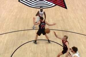 身体太好了~杨瀚森低位转身勾手 斯科蒂·巴恩斯光速弹起钉板血帽