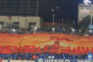 群众足球邀请赛现场球迷制作tifo:中国U23必胜!