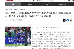 体育资讯1月25日讯 U23亚洲杯决赛,日本队4-0横扫中国队夺冠。赛后,日本各大媒体、体育相关媒体都报道了这次冠军。除了比赛本身,许多媒体都将眼光放在了这支队伍的平均年龄上。