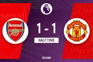 半场-阿森纳1-1曼联 马丁内斯乌龙球苏维门迪送礼姆伯莫推射扳平