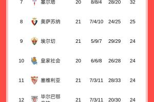 胶着!西甲积分榜:巴萨52分领跑,皇马51分第二
