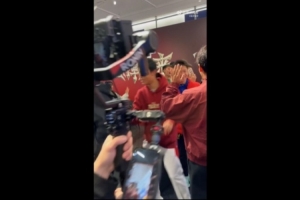 体育资讯1月27日讯 记者赵宇晒出一段视频,彭啸、向余望、李镇全与球迷一起跳胜利舞。