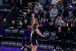太极限了!米哈伊柳克扑到脸上 库里看不到筐仍能飚中后撤步三分