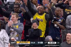 小詹也是詹!布朗尼抢断反击单臂暴扣&老詹点头肯定 现场鼓掌欢呼