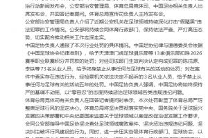 体育总局竞体司有关负责人在回答记者提问时表示,本次处罚彰显了体育总局严厉整肃足球行风的坚定决心。体育总局将坚决贯彻落实党中央、国务院关于足球振兴发展的决策部署和中央纪委国家监委关于足球领域以案促改促治促发展工作要求,会同公安部指导中国足协坚决查处足球领域腐败案件,坚决惩治违规违纪问题,坚决纠治破坏行风建设的行为。同时,进一步压实各级体育行政部门、足球协会,以及中足联行业监管责任,强化系统施治、提升监督效能,持续巩固拓展“假赌黑”治理的成效,为坚定不移推进足球振兴发展提供更加坚强的政治保障。