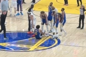 功勋助教!迈克·布朗赛后和库里追梦拥抱 追梦像个孩子抱半天