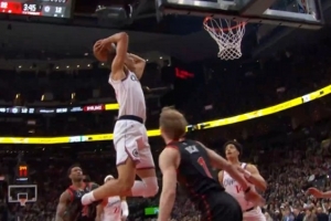年轻人真能蹦!科比·桑德斯沿底线突破双手暴力砸扣