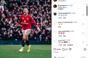达洛特社媒晒本场庆祝照,配文:德比战胜利!