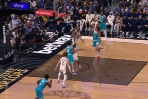 三分超级准!凯莱布·乐福半场三分4中3射落11分 送半场超远空接
