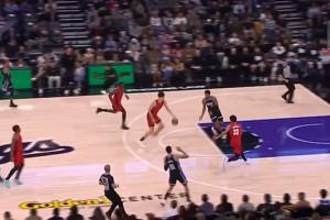 嗅觉!杨瀚森回防直接拦截抢断!回头送出精妙击地传球助攻队友!