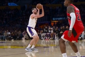 穷追猛打!蒂米三分命中后东契奇助飞艾顿 湖人轰22-6打停猛龙