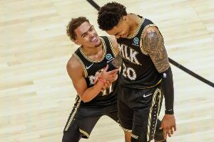 时过境迁!赛后科林斯和特雷·杨拥抱 两人曾在老鹰当了5年队友