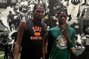 24直播网讯 2026届新秀AJ-迪班萨在播客中盛赞杜兰特是其偶像,欣赏他高效简洁的球风。他透露曾与杜兰特合练,并受其影响专注于投篮。迪班萨更幽默表示,希望杜兰特能等他进入NBA后再加入他的球队,甚至开玩笑说“去火箭也行”。