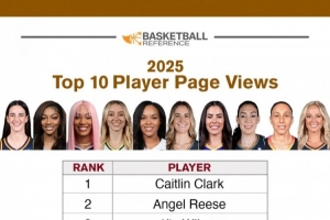 24直播网讯 Basketball Reference公布WNBA赛季期间站内浏览量TOP10球员:克拉克居首,里斯、阿贾-威尔逊分列二、三位。佩奇-布克斯、科利尔、约内斯库等球员也进入前十,展现了极高人气。