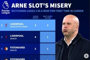 24直播网讯 利物浦主帅斯洛特在英超1-2负于曼联后,遭遇执教生涯首次联赛三连败。数据显示,此前在他执教费耶诺德及阿尔克马尔期间,球队最长连败纪录仅为1-2场。此次三连败是其个人执教生涯的首次。