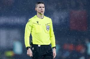24直播网讯 欧冠联赛第3轮,利物浦客场对阵法兰克福的裁判组名单公布。主裁为法国人勒泰西耶,VAR由法国人布里萨尔担任,助理裁判及第四官员均为法国籍。波兰裁判克维亚特科夫斯基将担任VAR助理。