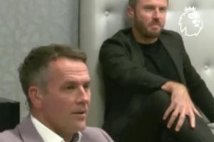 24直播网讯 英超曼联2-1客胜利物浦。赛后名宿欧文与卡里克观赛直播反应有趣:曼联闪电破门,卡里克激动而欧文平静;利物浦进球时,欧文自信预言球队胜利,但曼联反超后,欧文表情凝固,卡里克则沉默致歉。