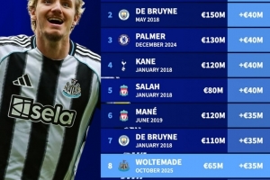 英超历史单次身价涨幅榜:萨拉赫涨幅7000万欧领跑,沃尔特·马德赫在列