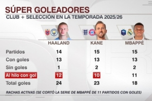 24直播网讯 ESPN统计了哈兰德、凯恩、姆巴佩本赛季数据。哈兰德14场轰24球,连续12场破门;凯恩15场进23球,连续10场进球;姆巴佩15场进18球,曾连续11场破门。三人均展现恐怖状态,哈兰德效率暂居榜首。