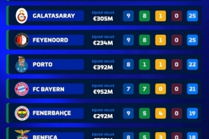24直播网讯 欧洲前十联赛中,目前共有8支球队保持不败。五大联赛仅剩拜仁(7战全胜)和亚特兰大(7场2胜5平)。其余不败球队包括布拉格斯拉维亚、加拉塔萨雷、费耶诺德、波尔图、费内巴切和本菲卡。
