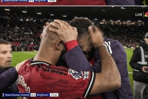 24直播网讯 曼联在英超4-2战胜布莱顿,两大新援姆伯莫和库尼亚表现出色,共打入3球。姆伯梅上演梅开二度,库尼亚锦上添花,帮助球队取得关键胜利。赛后两人激动相拥,庆祝这场来之不易的胜利。