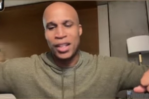 “我有一个很好的例子可以说明勒布朗很真诚。钱宁(节目主持人弗莱),我不记得我们是在芝加哥还是多伦多打客场,我们在录像会议里发生了一点事情,勒布朗大发脾气。但那晚我们要聚餐,我和钱宁就说,‘不,我们不去吃晚饭了。他这个老家伙很暴躁。’但他们在饭后去喝酒了,所以我们俩没去吃饭,但我们加入他们去喝酒了。我们刚到那里,勒布朗此时已经微醺,他走向我们,双手就这样搭在我们的肩上说,‘伙计们,我很抱歉我之前大发脾气。’钱宁和我就说,‘大哥,没事的,我们知道你肩负着重任。’他说,‘伙计们,我很抱歉。我在发脾气。’我们就说,‘大哥,我们爱你。加油吧。’我们都会发脾气抱怨的,每个人都有情绪不好的时候。他知道自己发了脾气,我们都很冷静,因为我们知道这个混蛋承受着多大的压力。但他能够在喝了一两杯龙舌兰酒后就为此而道歉,那就是我们得以看到的他身上人性的一面。也许有人就看不到这一面,因为他必须以某种方式表现自己。但我见过他真实的样子,我见过他做一些真诚的事情,比如因为大发脾气而向他的兄弟道歉。而我也接触过一些超级球星从来不会这么做。所以这取决于你当时和某个人的经历如何。”