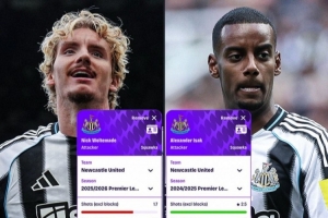 24直播网讯 纽卡新援沃尔特马德赛季初表现惊艳,6场英超4球。数据对比显示,他与伊萨克上赛季场均进球数同为0.8球,但沃尔特马德射门效率更高,且在快速做球、造犯规、对抗和夺回球权等关键数据上全面占优,展现出更强的综合能力。