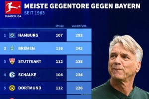 24直播网讯 拜仁周五将战不莱梅。德甲历史数据显示,汉堡和不莱梅是面对拜仁丢球最多的球队,分别丢252球和242球,位居前两位。