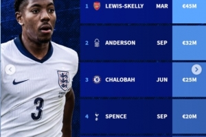 24直播网讯 德国转会市场盘点,2025年英格兰将有5名球员上演首秀。斯凯利(阿森纳)、查洛巴(切尔西)、斯宾塞(热刺)等在列,身价从600万到4500万欧元不等,均效力于英超俱乐部。